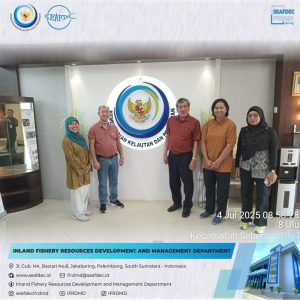 On 4 July 2025, Mr. Dan Baliao, Chief of SEAFDEC/AQD, accompanied by Dr. Edgar Amar, Head of the Training and Information Division, conducted a working visit to IFRDMD in Palembang. The purpose of the visit was to gain firsthand insight into IFRDMD’s facilities and ongoing freshwater aquaculture activities.